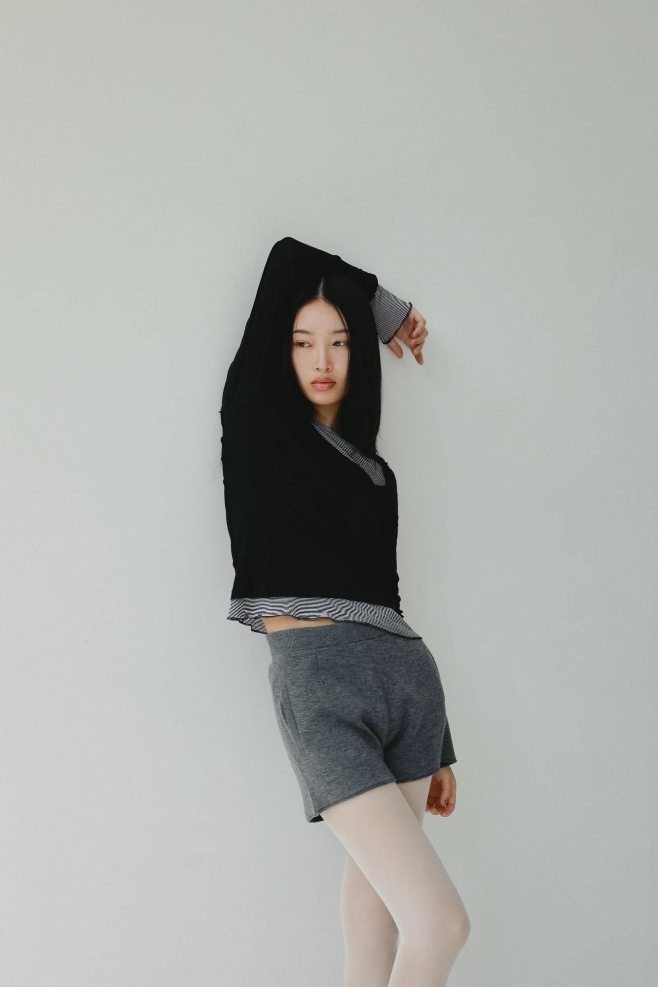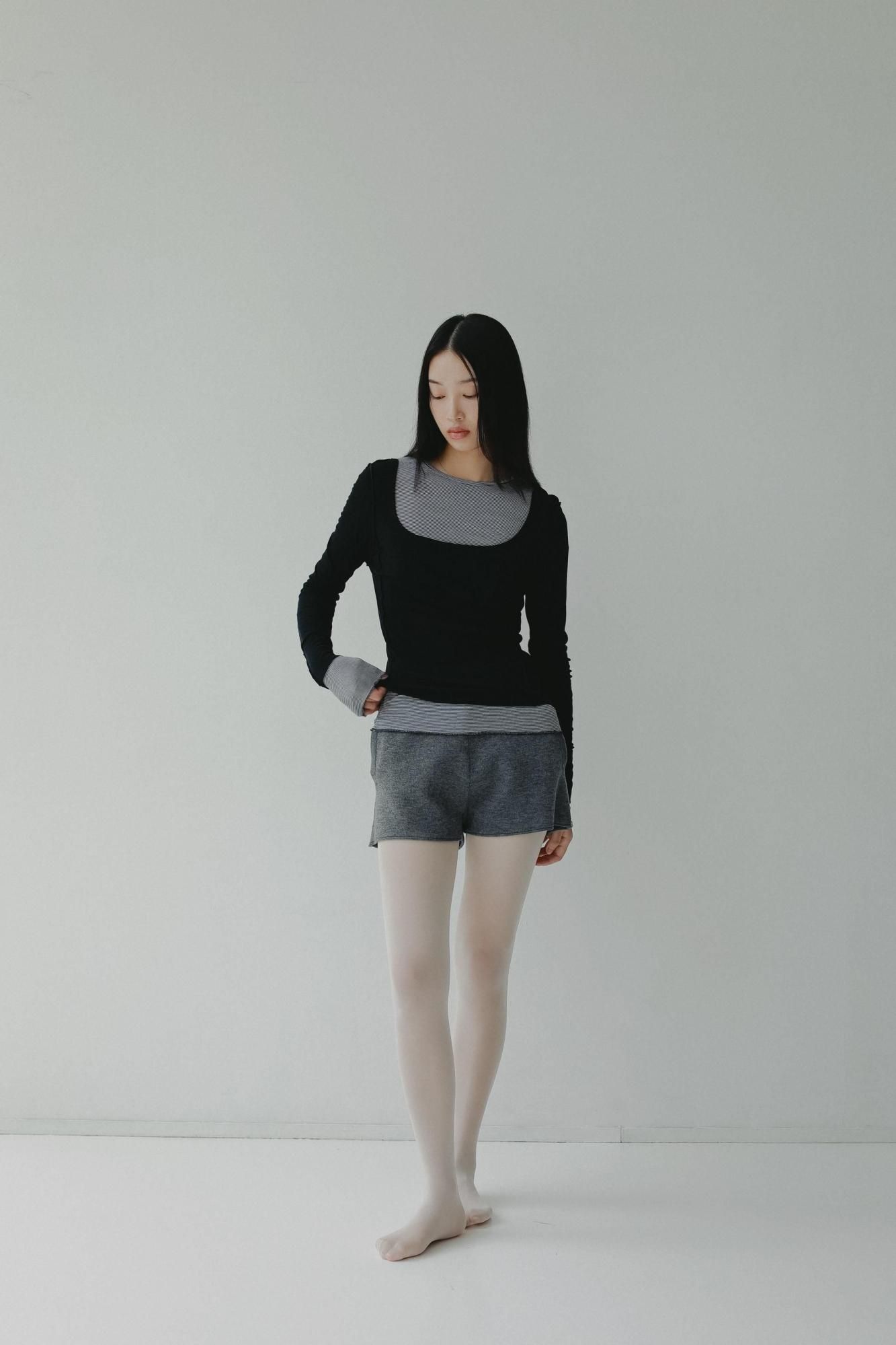 ダブルフェイス編みによる、なめらかな肌触りのニットショートパンツ。