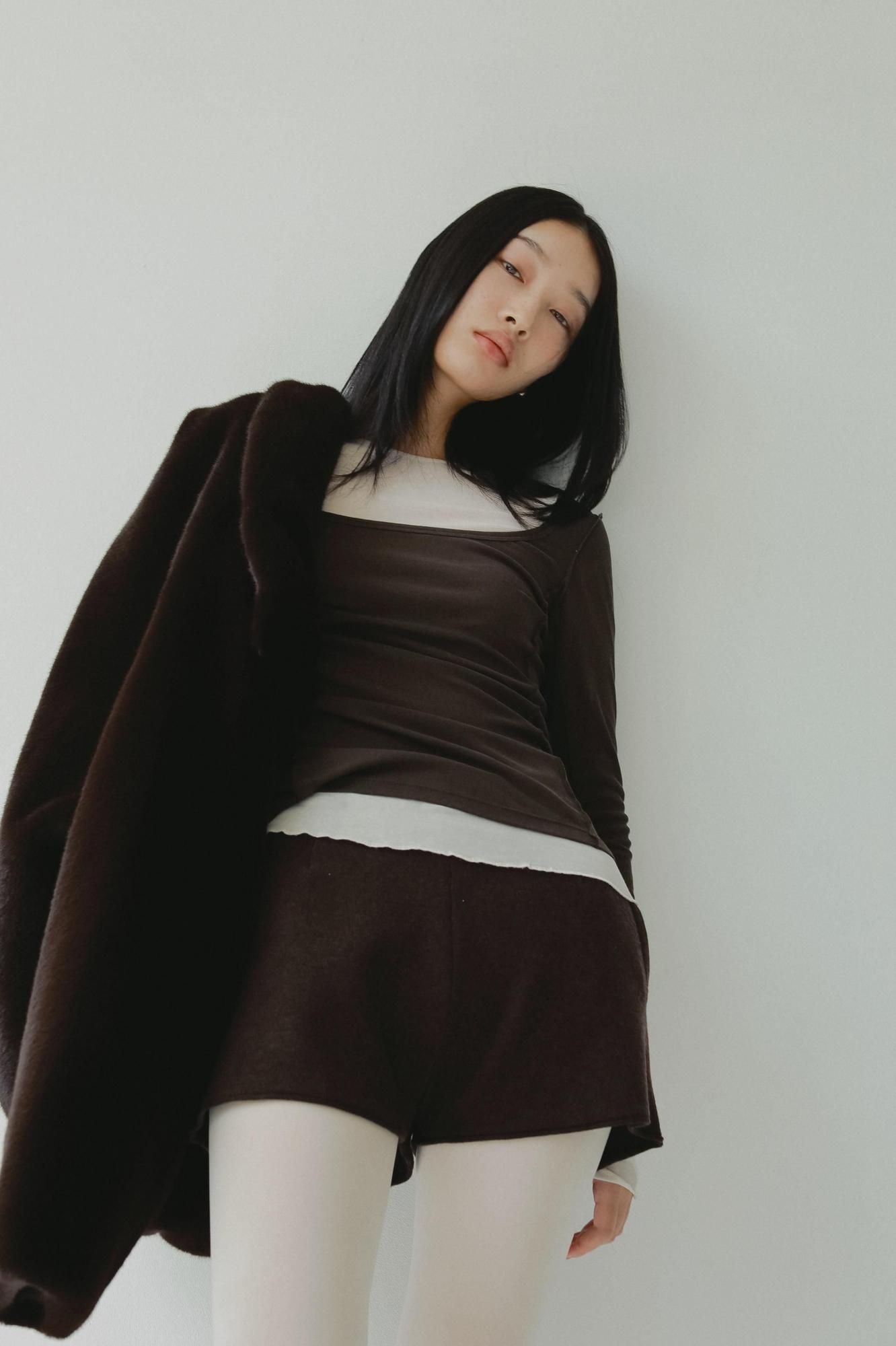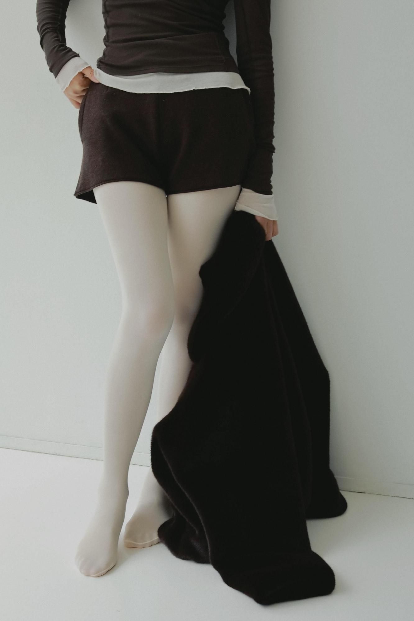 ダブルフェイス編みによる、なめらかな肌触りのニットショートパンツ。