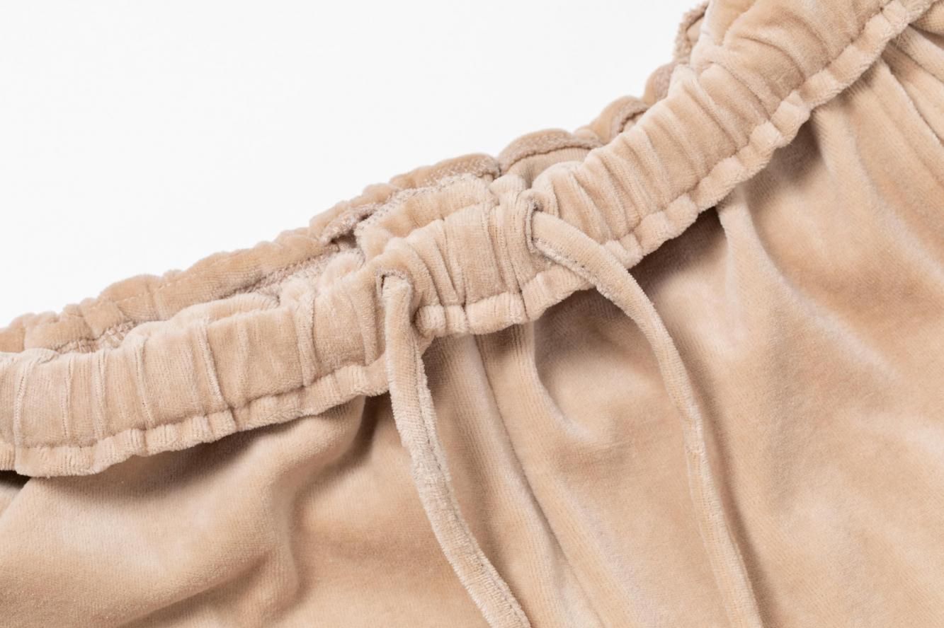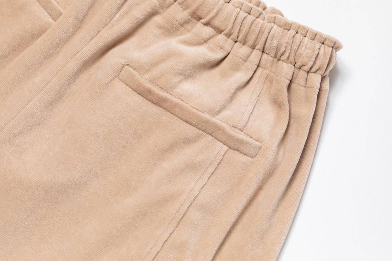 柔らかくしっかりとしたベロア素材で仕立てたワイドパンツ。