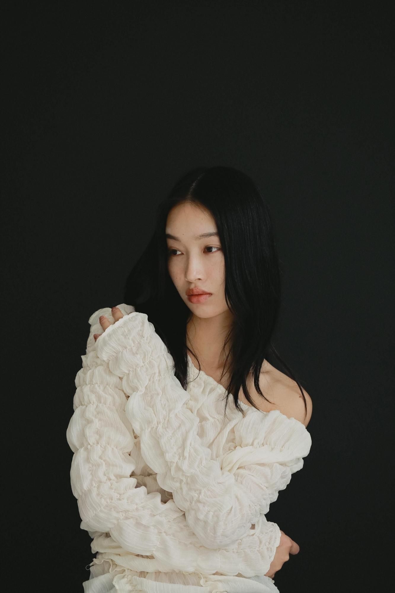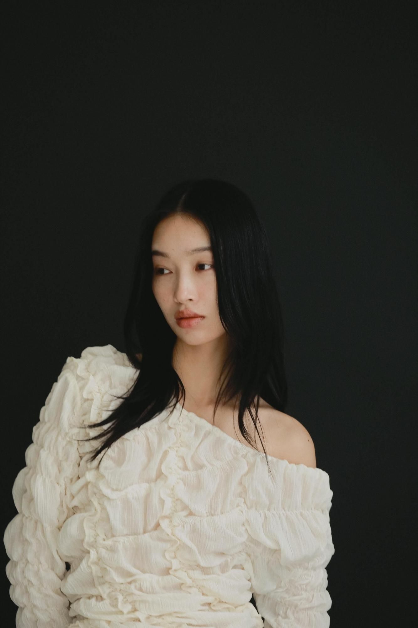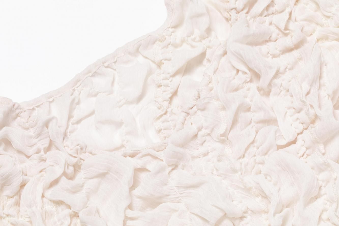 柔らかく程よい透け感のある楊柳生地を使用し、1枚でもさらりと着られるトップスです。全体にたっぷりと施したシャーリングとフリルが女性らしいニュアンスを演出します。また背中をやや大きめに開けて抜け感を出し、RIELLE RICHEらしいヘルシーなデザインに仕上がりました。着用する人の体型に沿って自然なシルエットが生まれます。