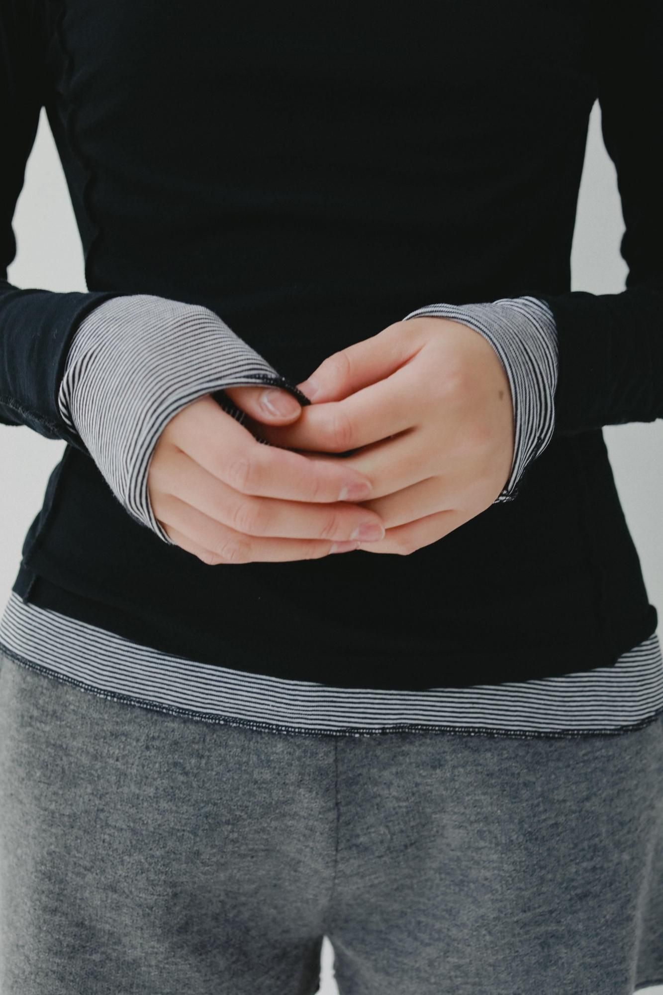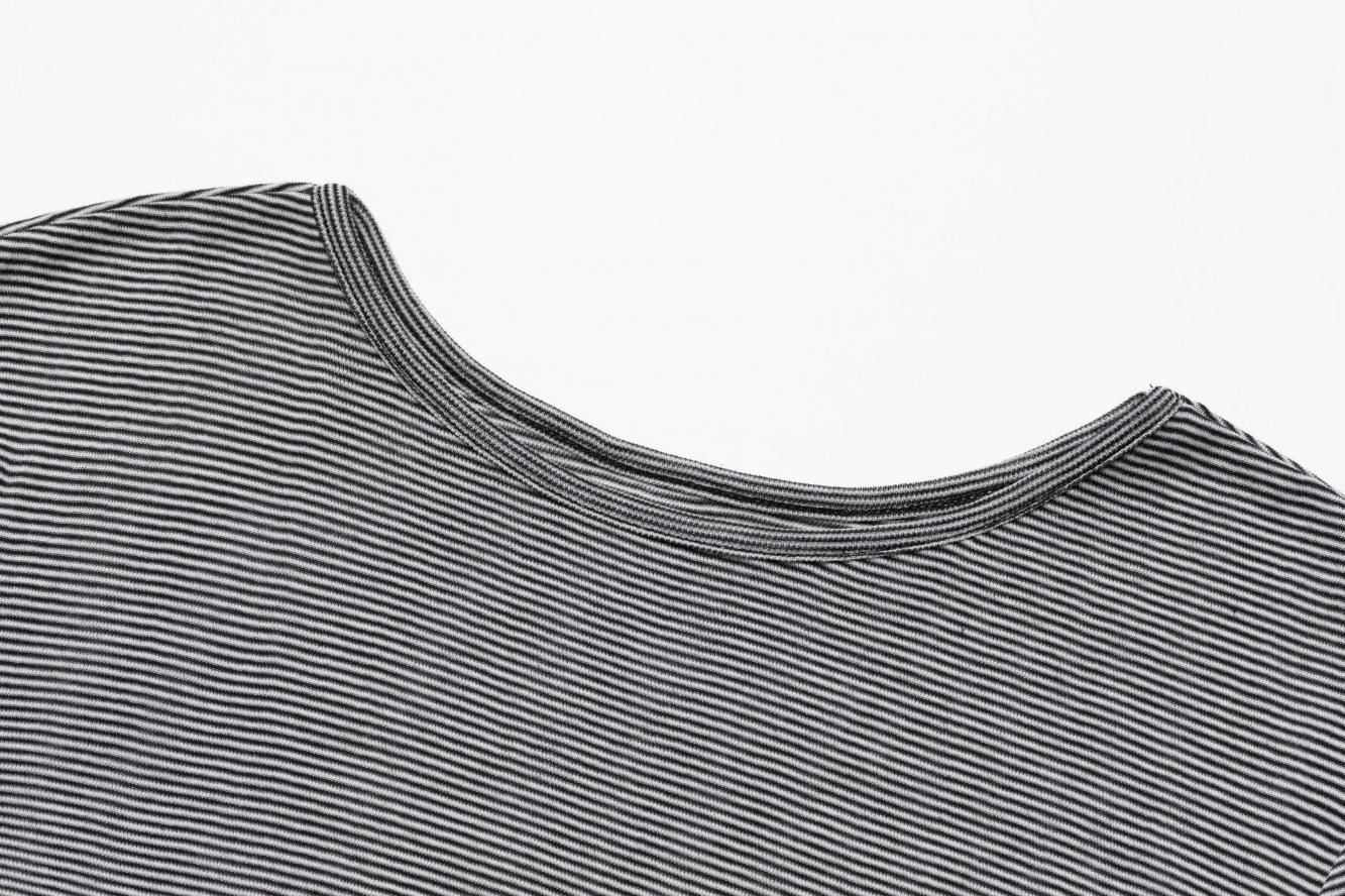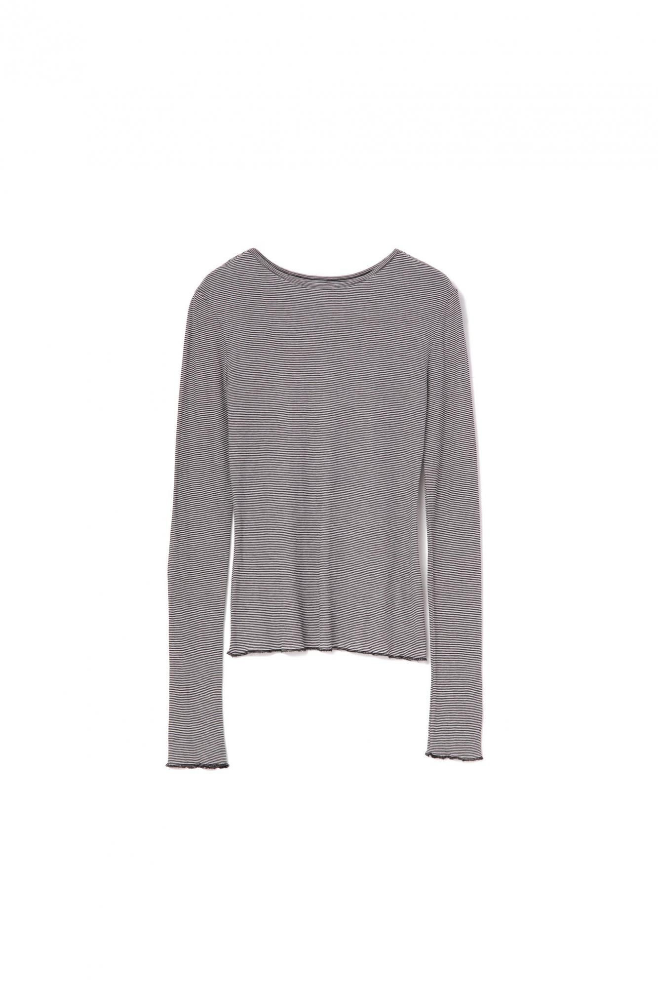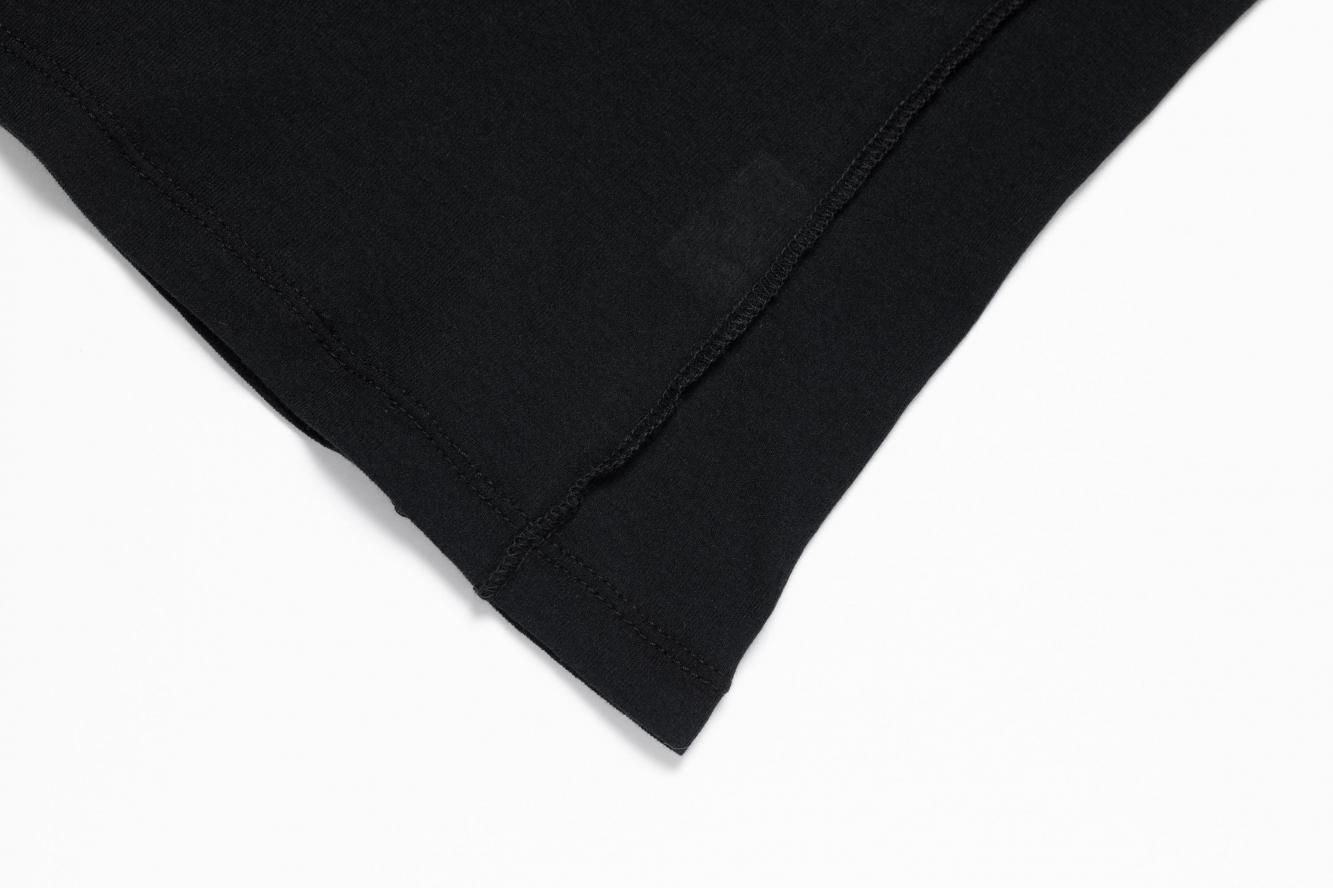 外側のトップスはスクエアネックと、ステッチをすべて表出しにしたデザインが特徴です。また内側のトップスはクルーネックで、袖と裾をメロウ仕上げにしました。どちらも同じ、ふんわりとシャリっと優しいタッチが特徴のシアーフライス素材を使用しています。秋のレイヤードスタイルに映えるデイリーに活躍する万能トップスです。