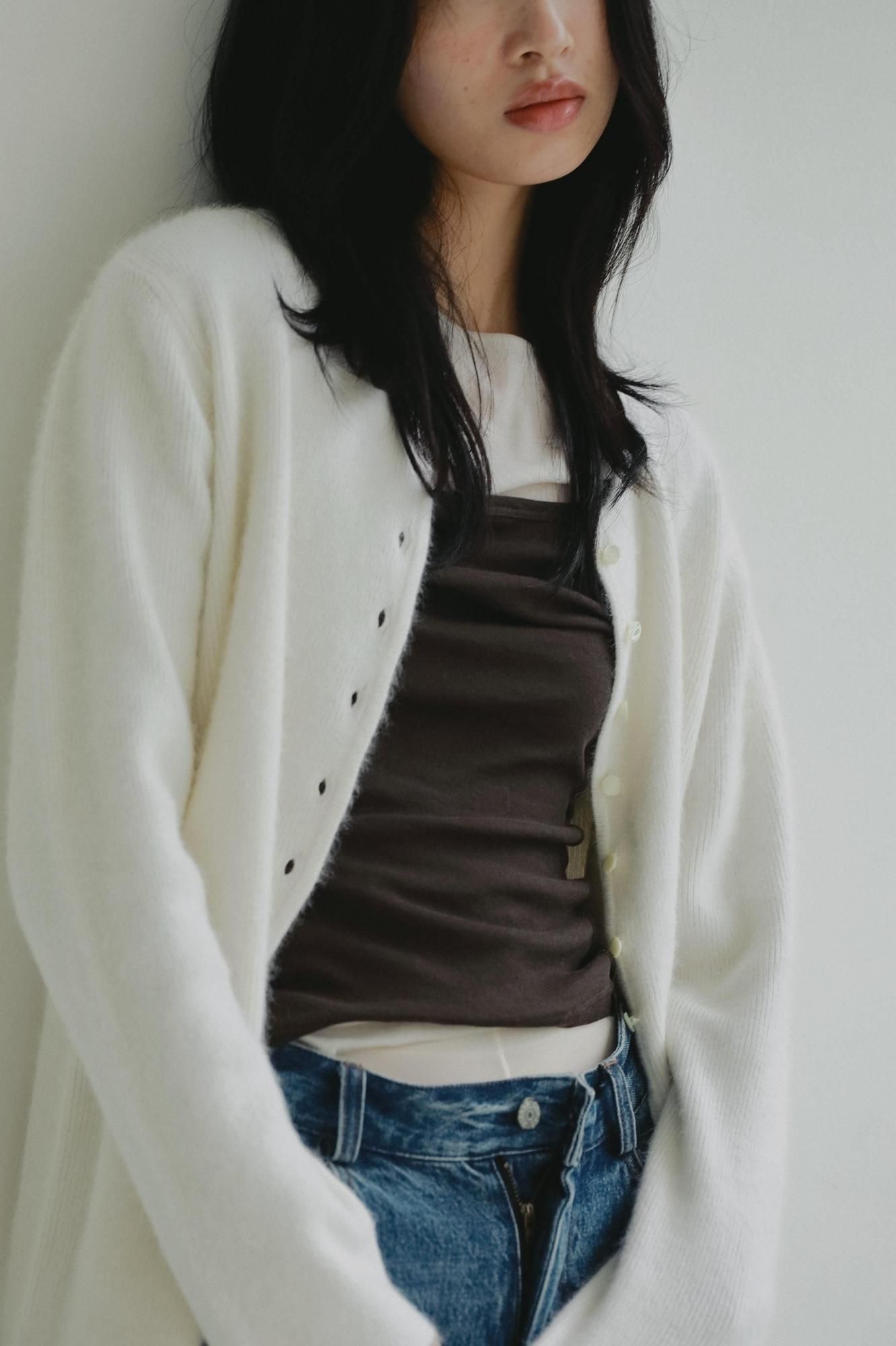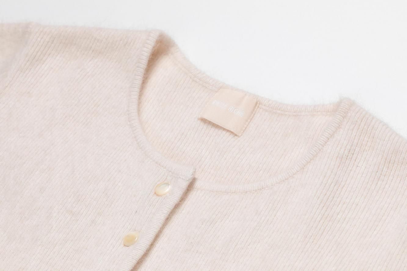 フォックス混で毛足の長いふわふわとした質感が魅力のカーディガン。