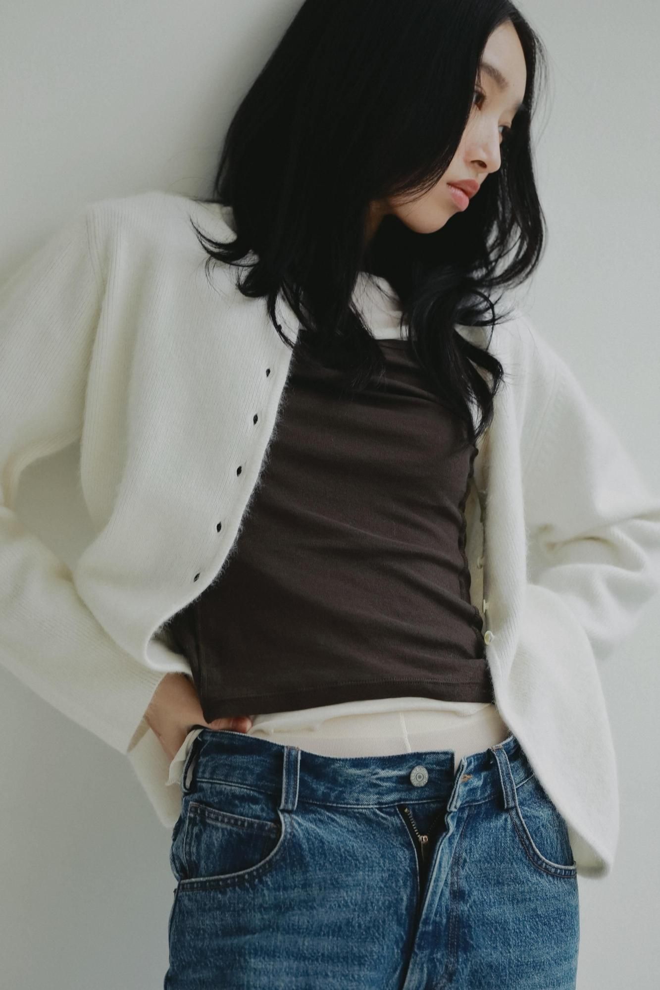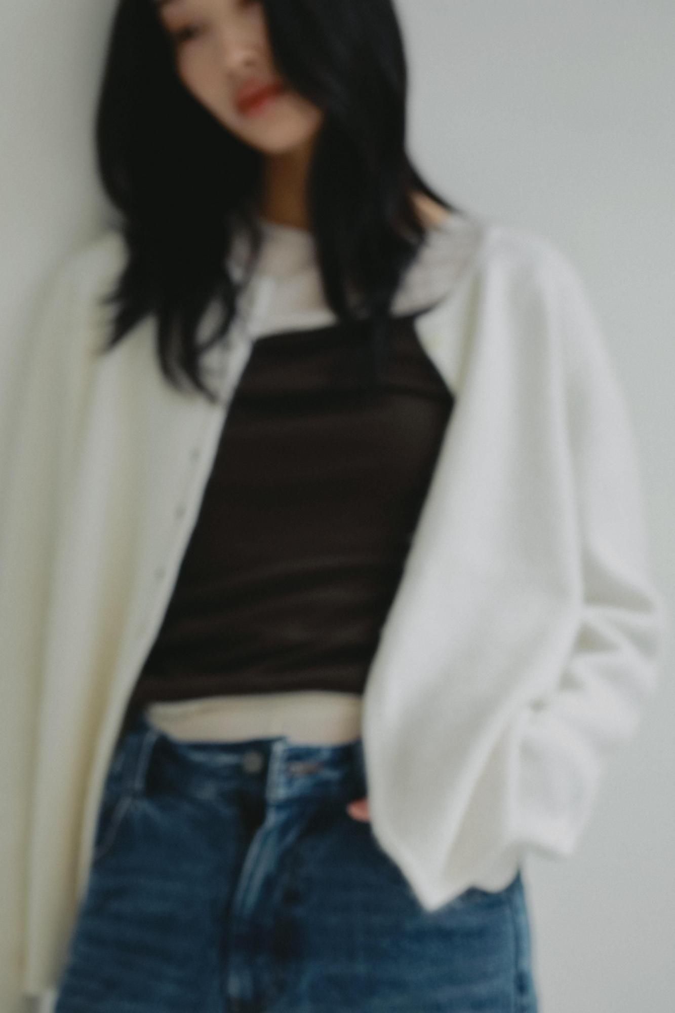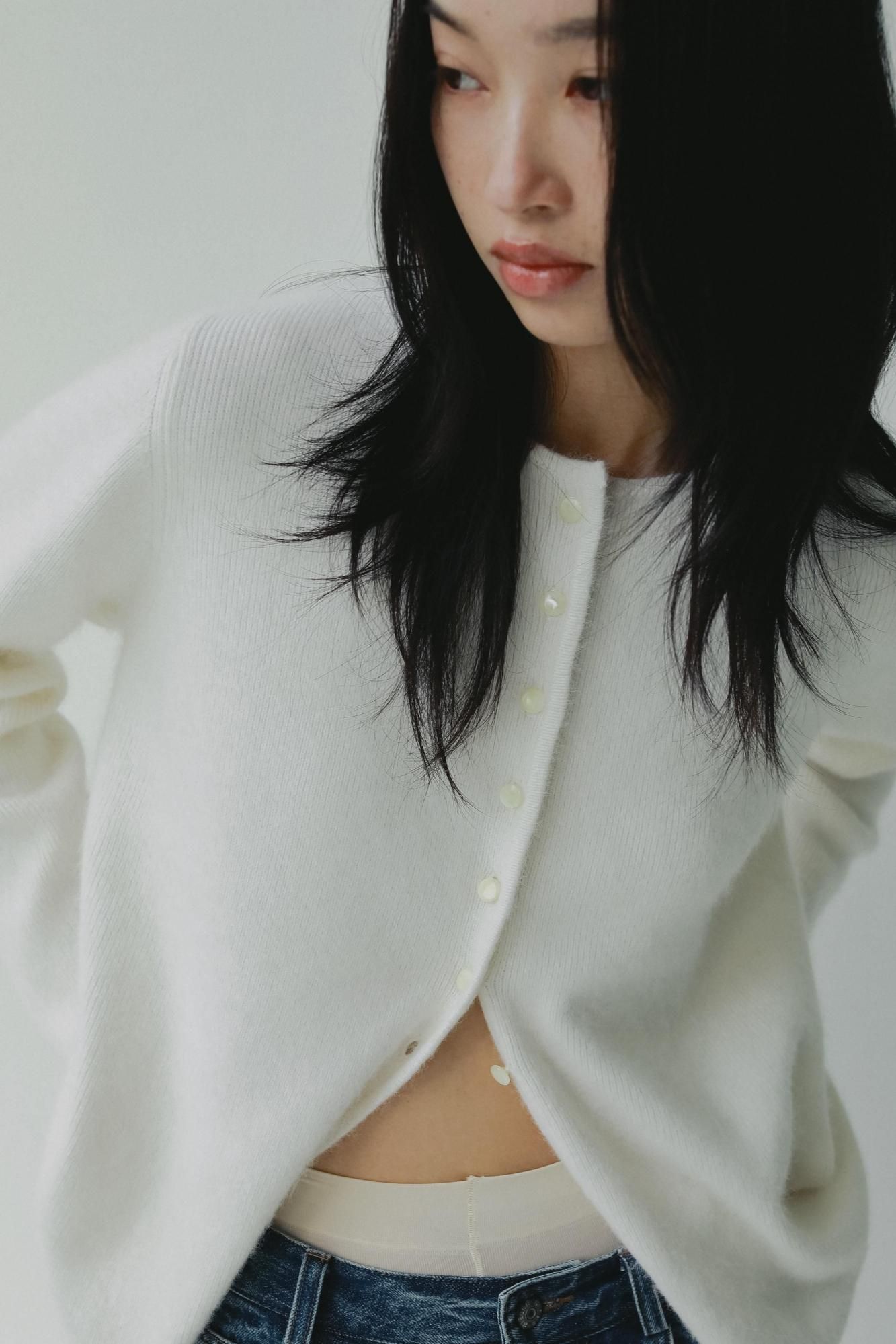 カーディガンとしてはもちろん、ボタンを留めてトップスとしてお召しいただくこともおすすめです。シンプルながら素材の存在感が際立つ一枚で、秋口から取り入れやすいアイテムです。