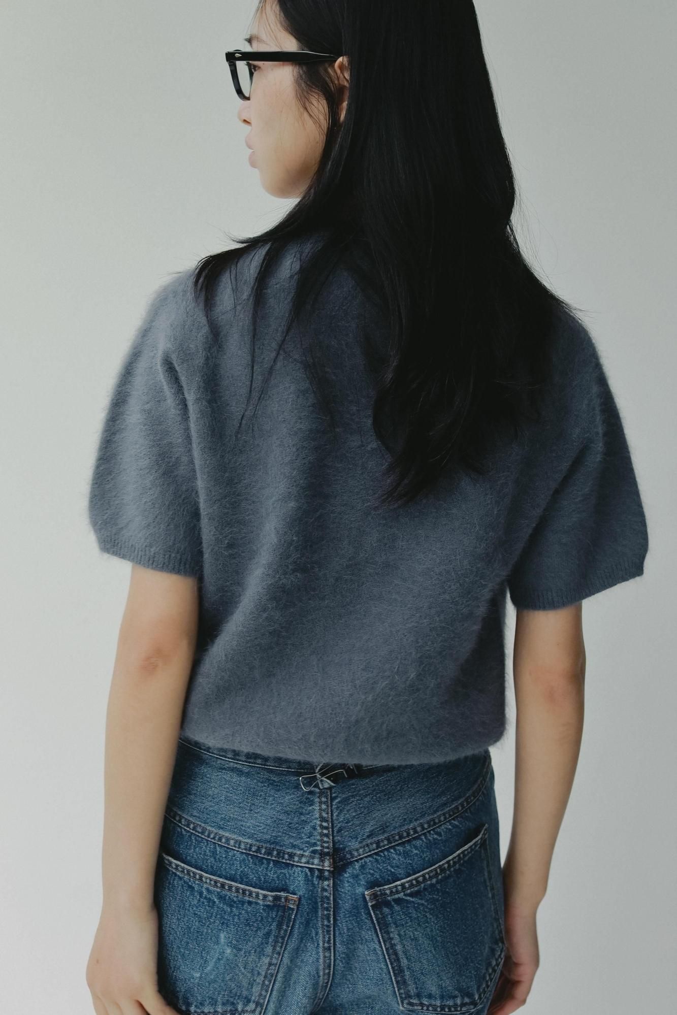 袖はほんのりパフスリーブで、さりげなく女性らしさをプラス。ややオーバーシルエットで、甘さを抑えたカジュアルな印象に仕上げました。