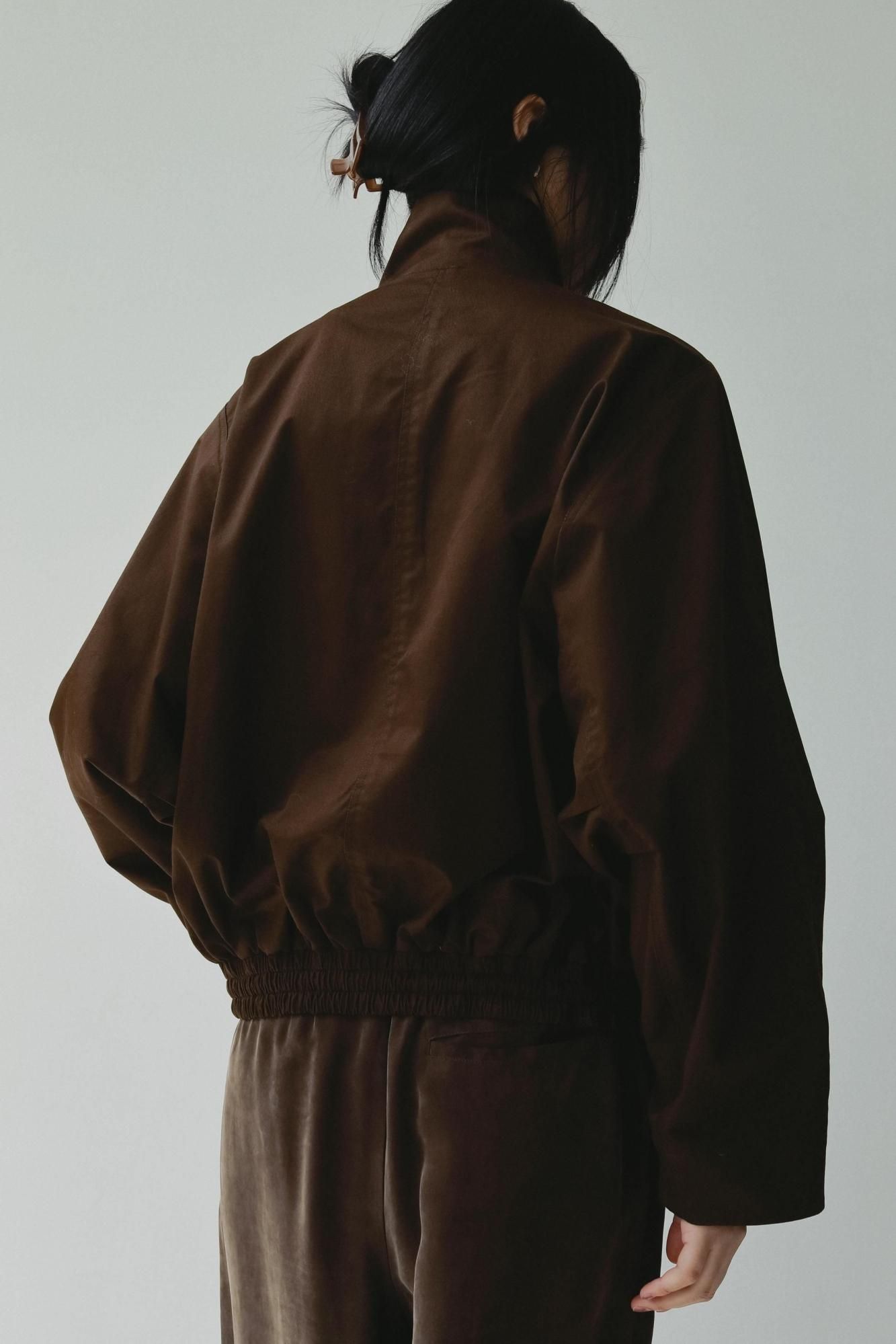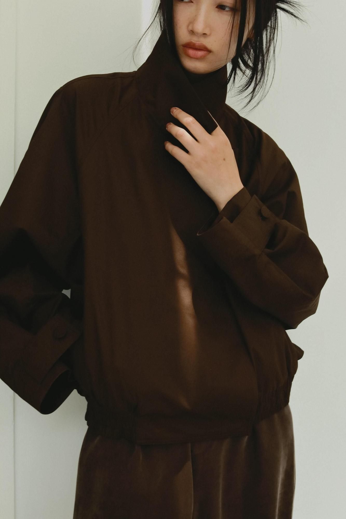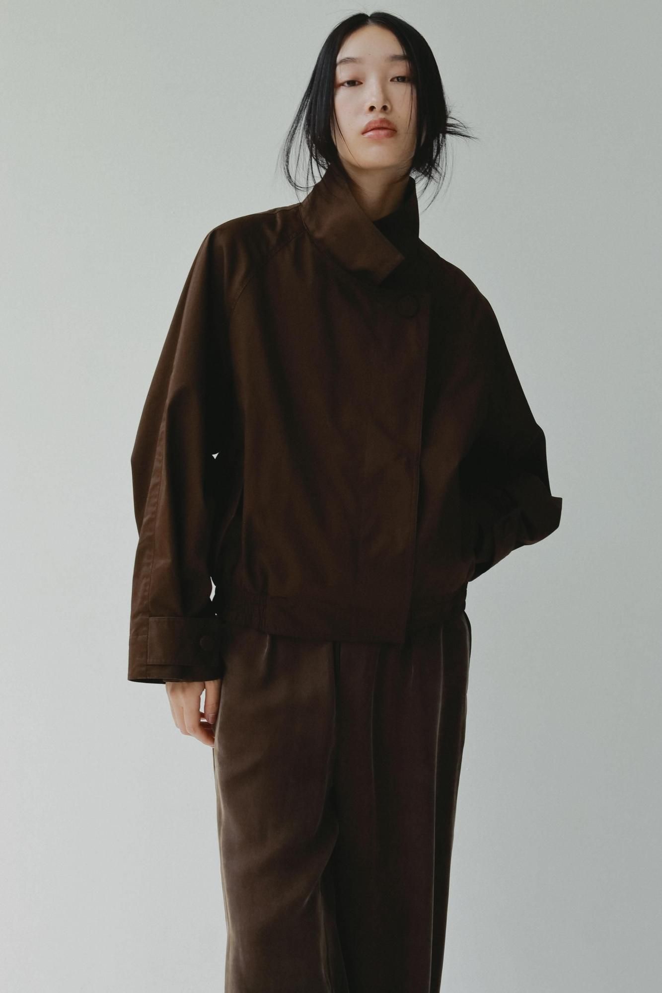 ドライタッチのツイル素材を使用した、軽やかで上品なラグランスリーブブルゾン。