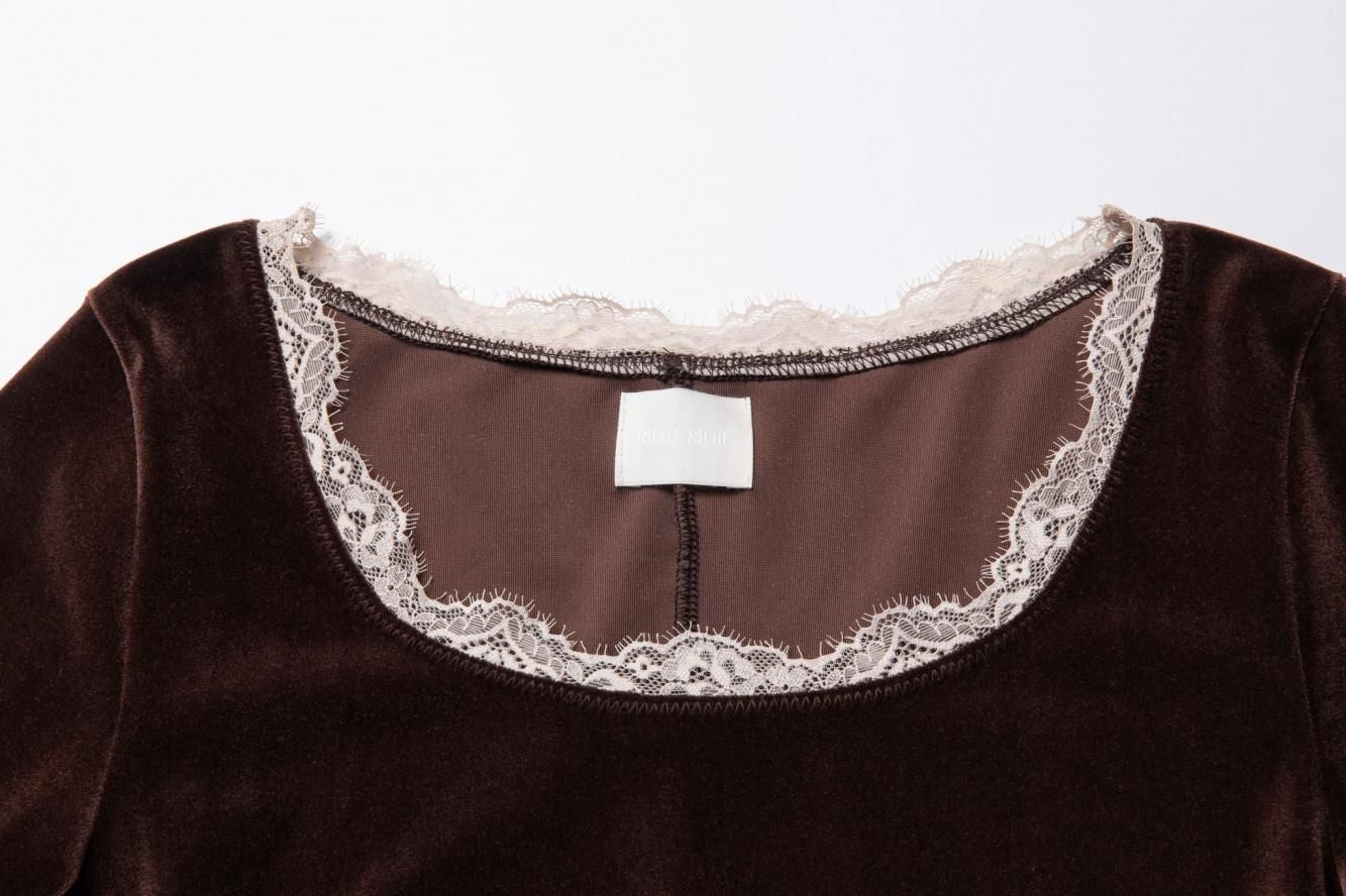ブラウンとブラックの2色展開で、どちらにもアイボリーのレースを組み合わせ、コントラストを抑えた柔らかな印象に仕上げました。