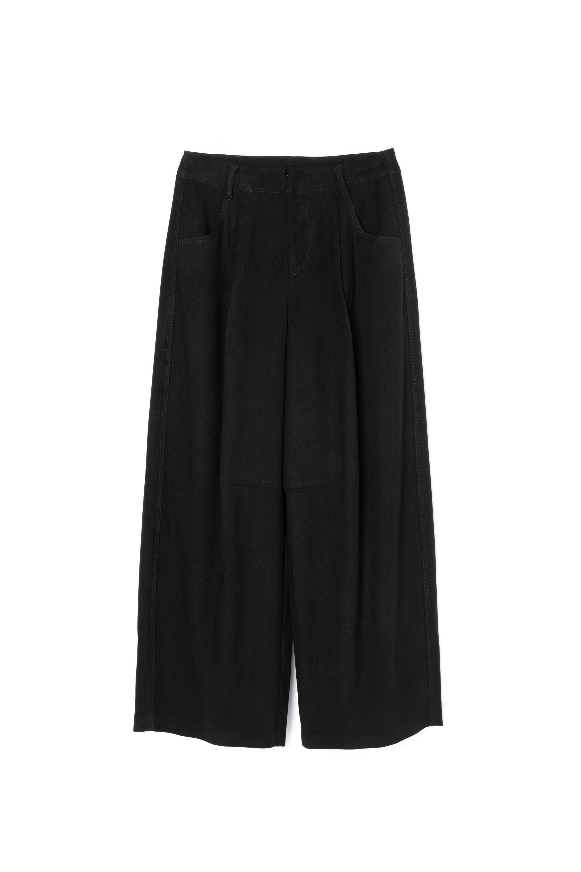 膝に入れたダーツが生み出す、立体的で丸みのあるシルエットが魅力のタックパンツ。