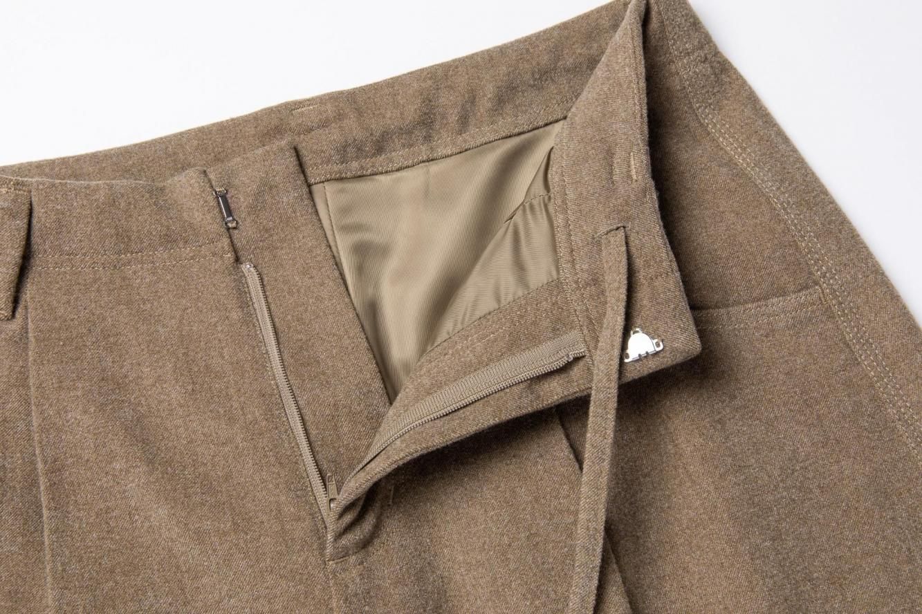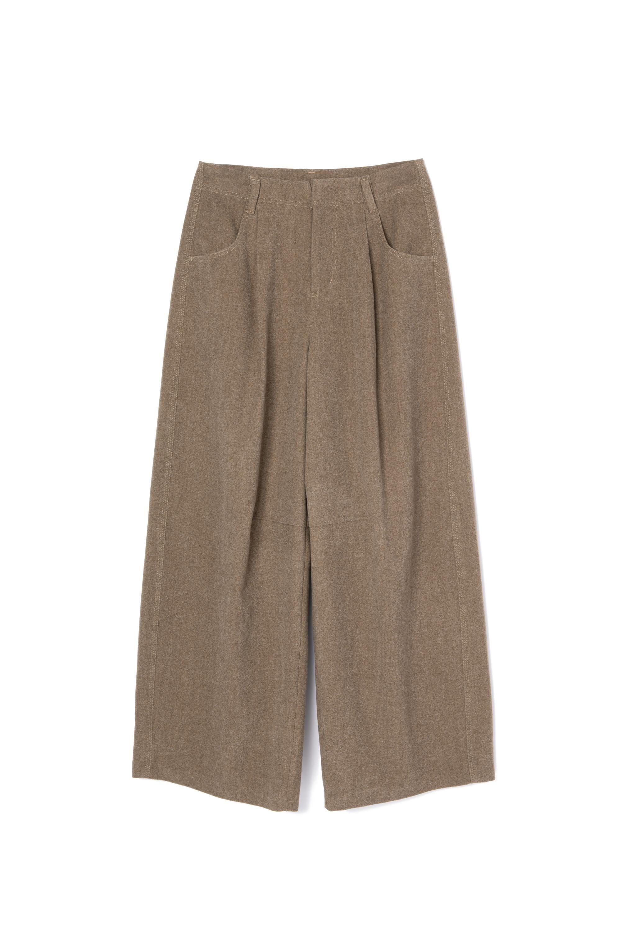 膝に入れたダーツが生み出す、立体的で丸みのあるシルエットが魅力のタックパンツ。