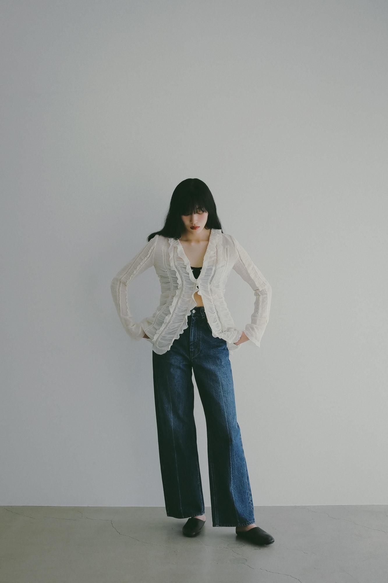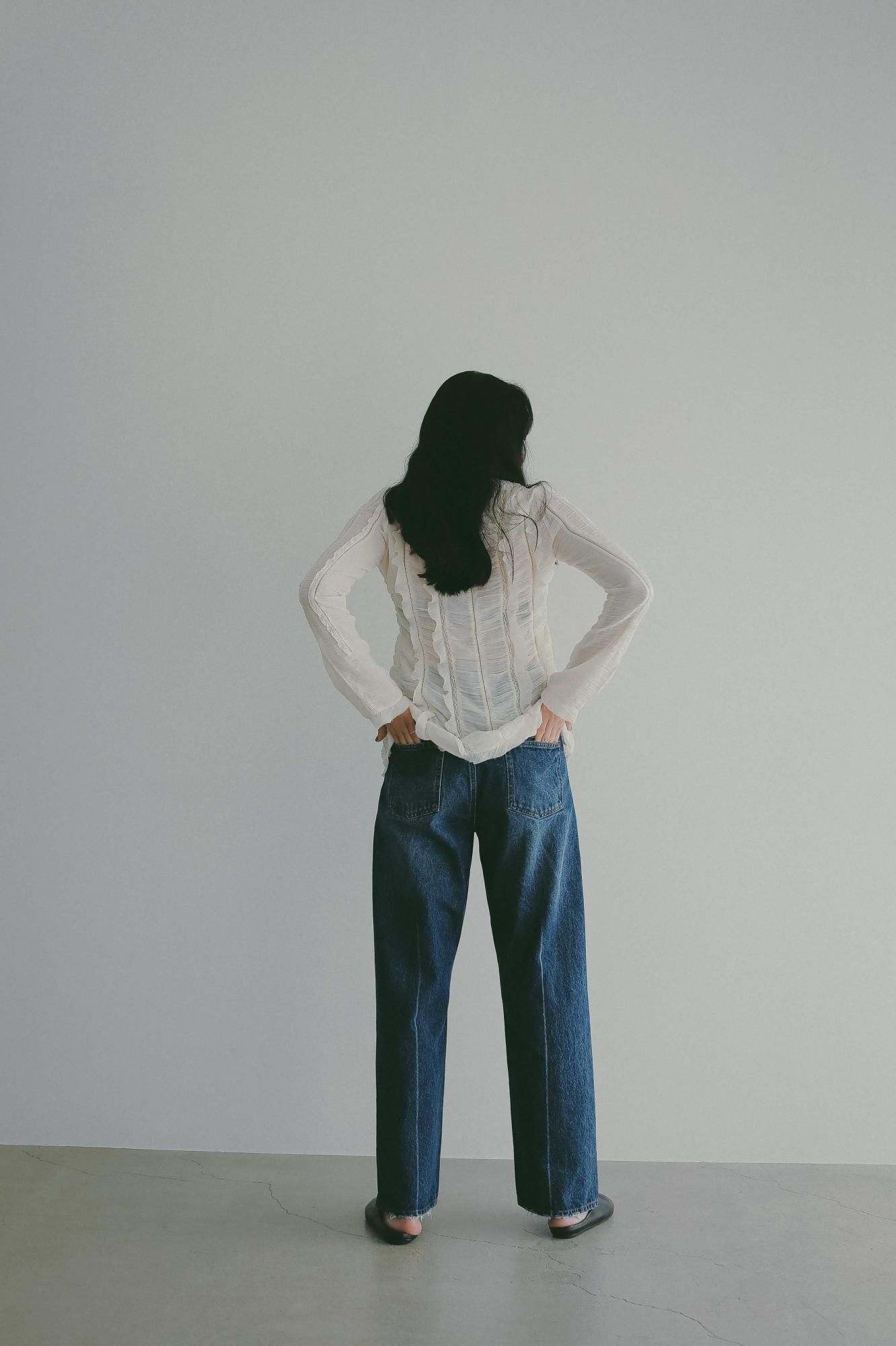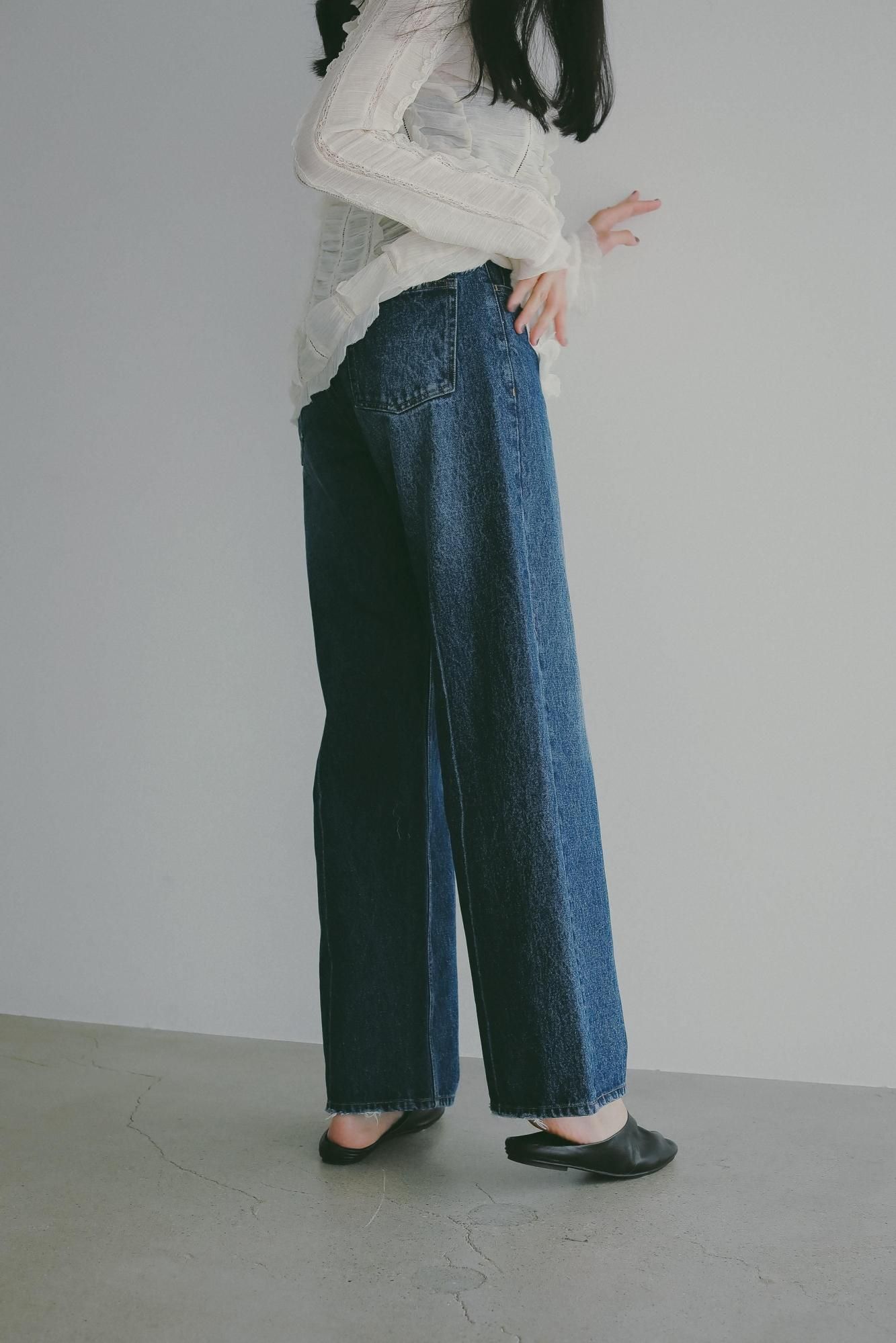 カジュアルながらもクリーンにまとまるシルエットで、日常に取り入れやすいモードデニムです。