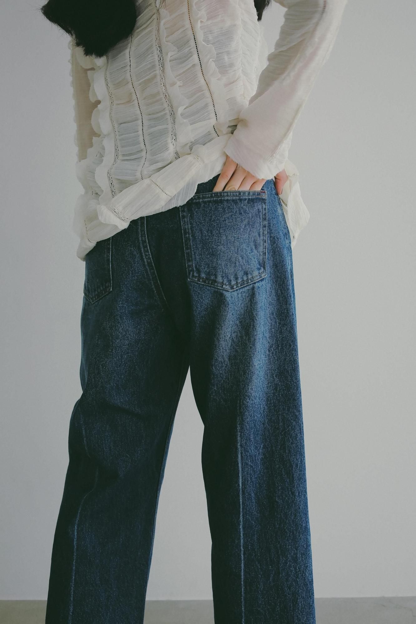 センターラインが縦のラインを強調し、すっきりとした印象を与えるストレートデニム。ジャストウエストでバランスよく履ける、シルエットにこだわった一本です。