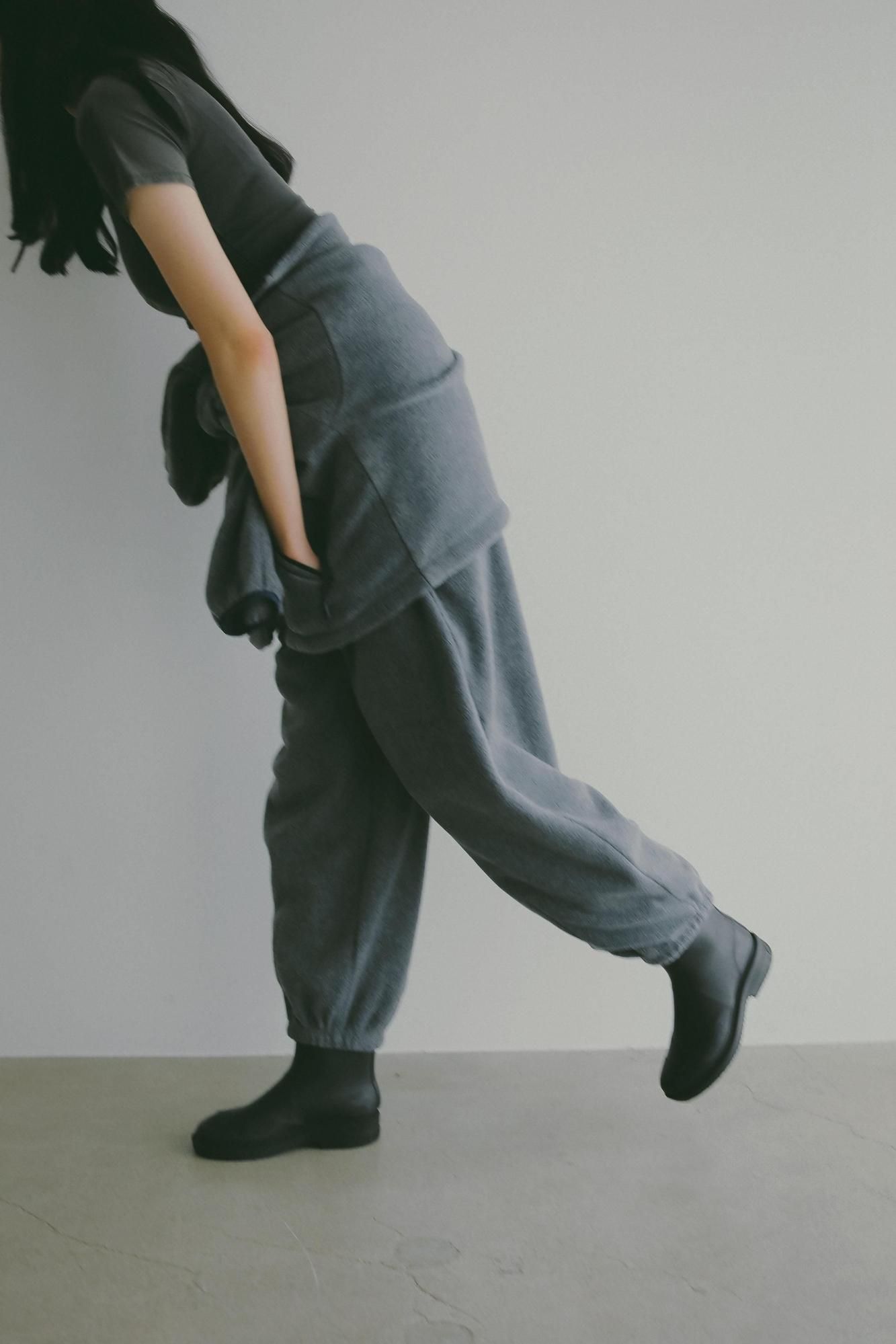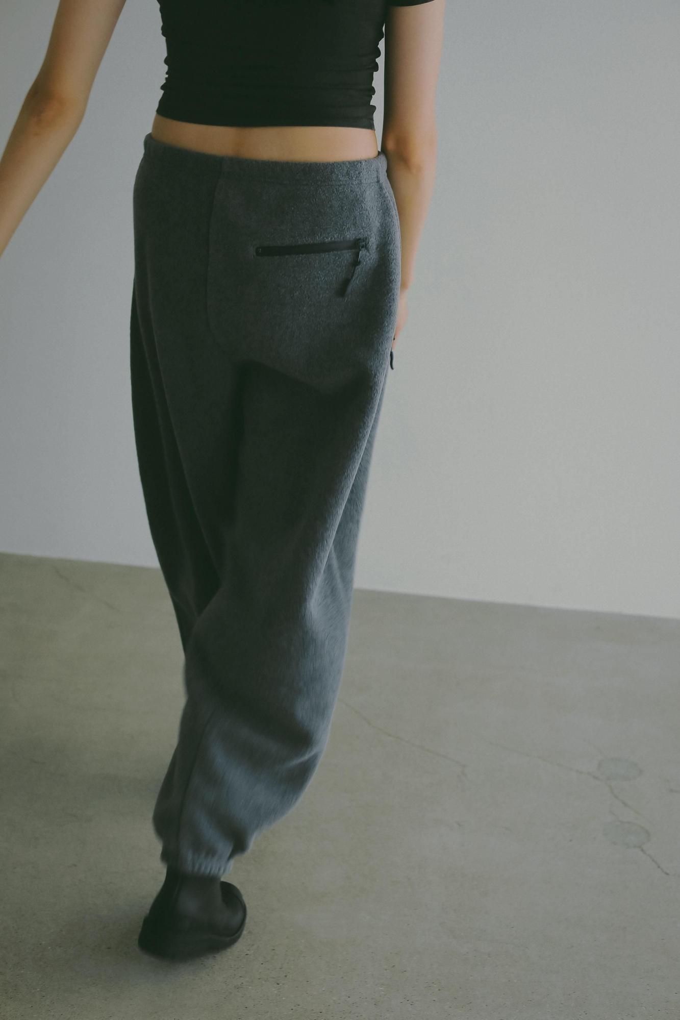 裾に縦のダーツを入れることで、立体的でカーヴィーなシルエットを描くフリースパンツ。