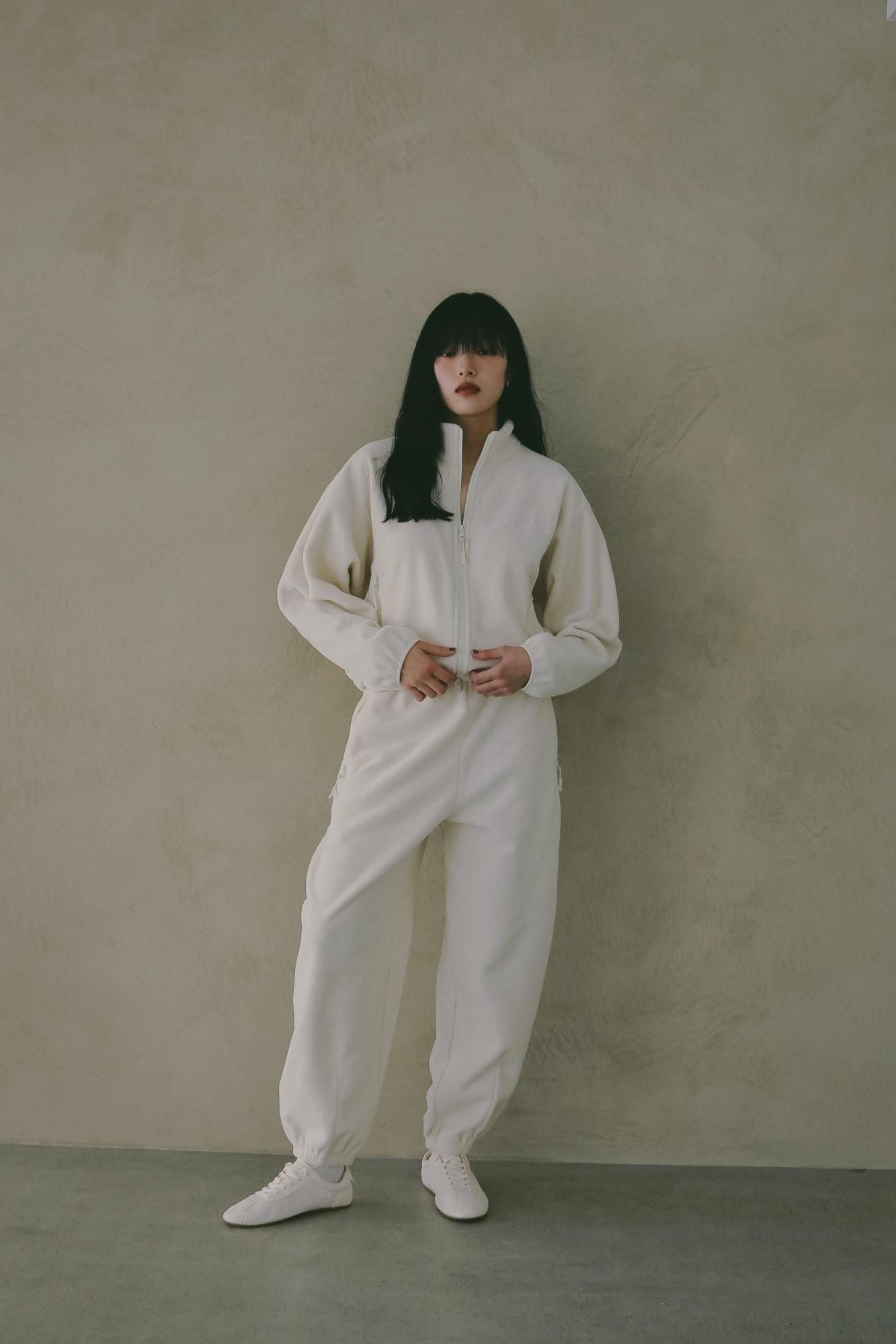 同素材のFleece Zip Blousonとセットアップで着用いただくと、よりトレンド感のあるバランスで冬のカジュアルスタイルをモードにアップデートしてくれます。