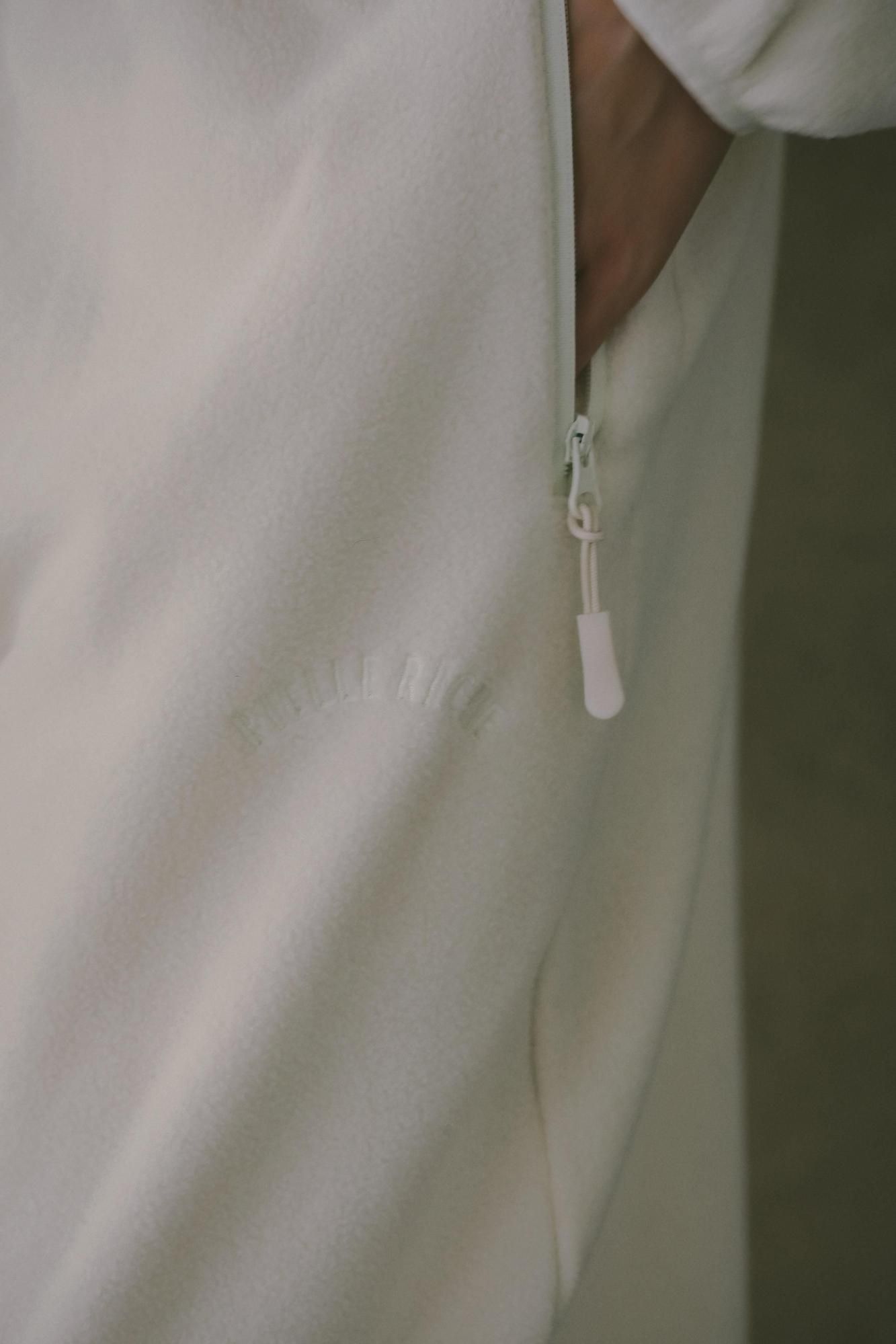 裾に縦のダーツを入れることで、立体的でカーヴィーなシルエットを描くフリースパンツ。