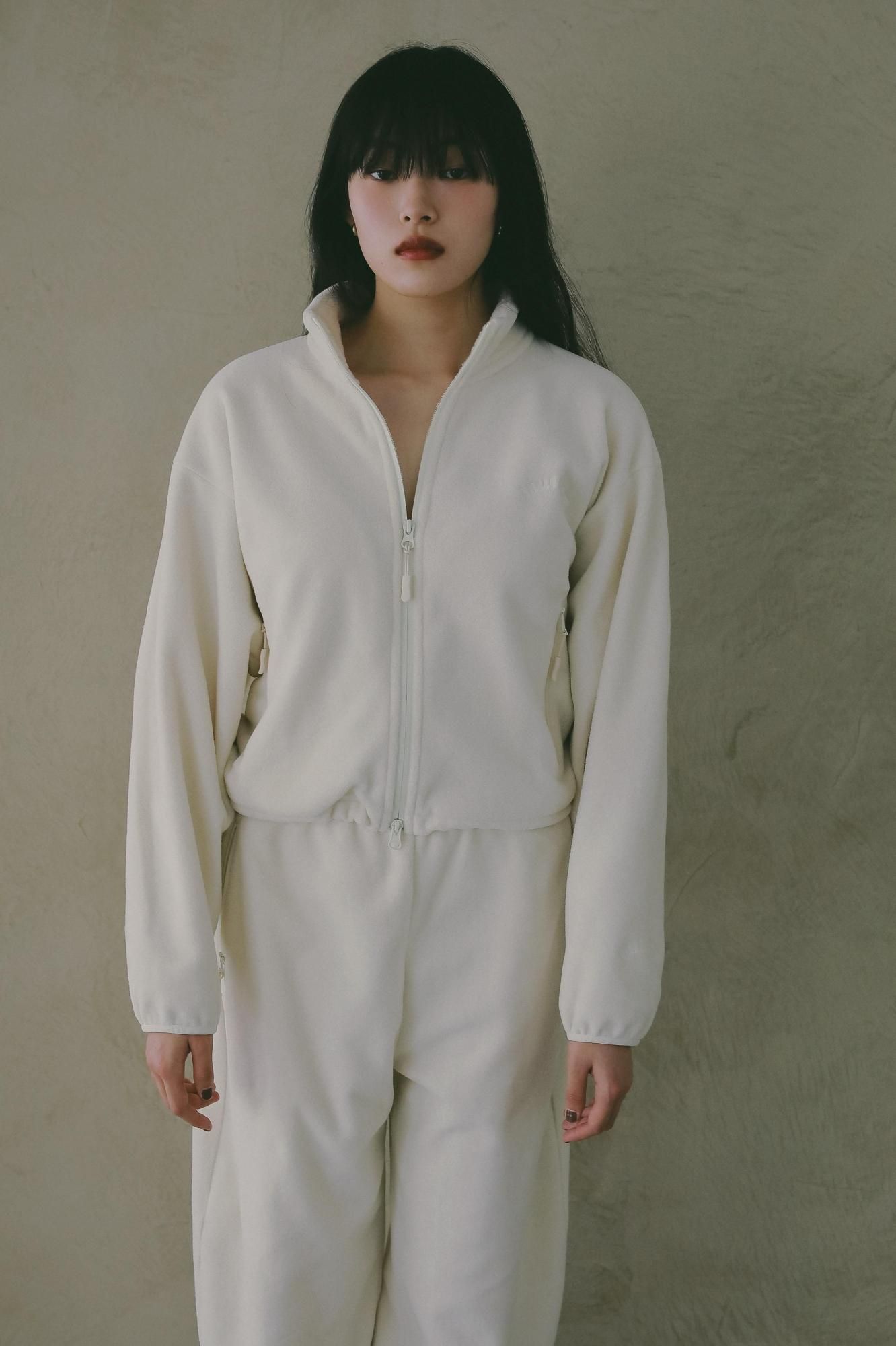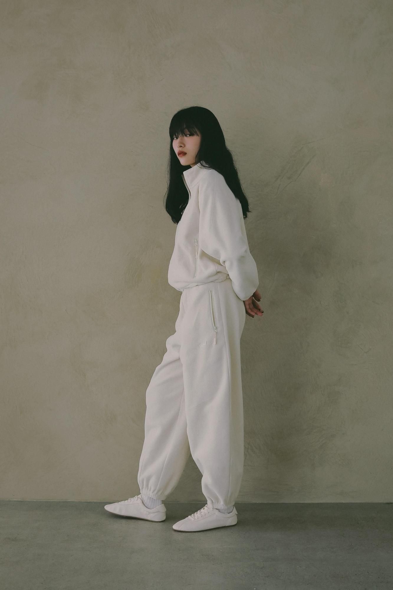 胸元には同色のロゴ刺繍をあしらい、さりげないアクセントに。同素材のFleece Pantsとセットアップでの着用もおすすめです。