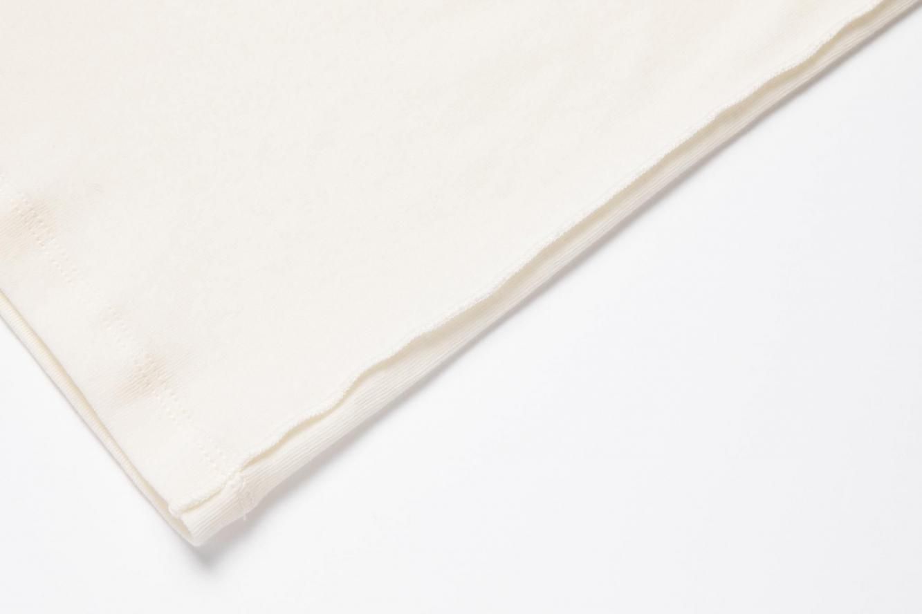 程よい透け感が軽やかさを生み、カジュアルな装いにも取り入れやすい一枚です。袖口にはピスネームをあしらい、両脇袖下にはメロウ仕上げを施して、さりげないディテールをプラス。綿100%素材で肌触りが良く、素肌に近いインナーとしても快適にお召しいただけます。