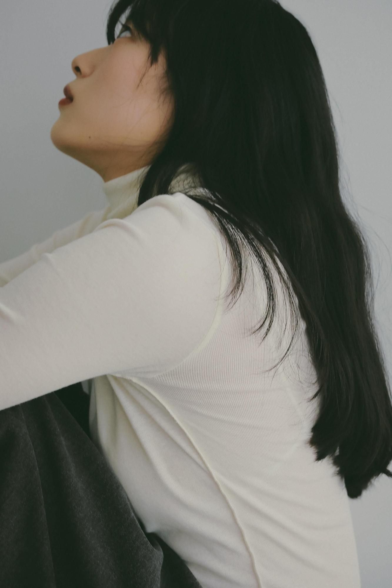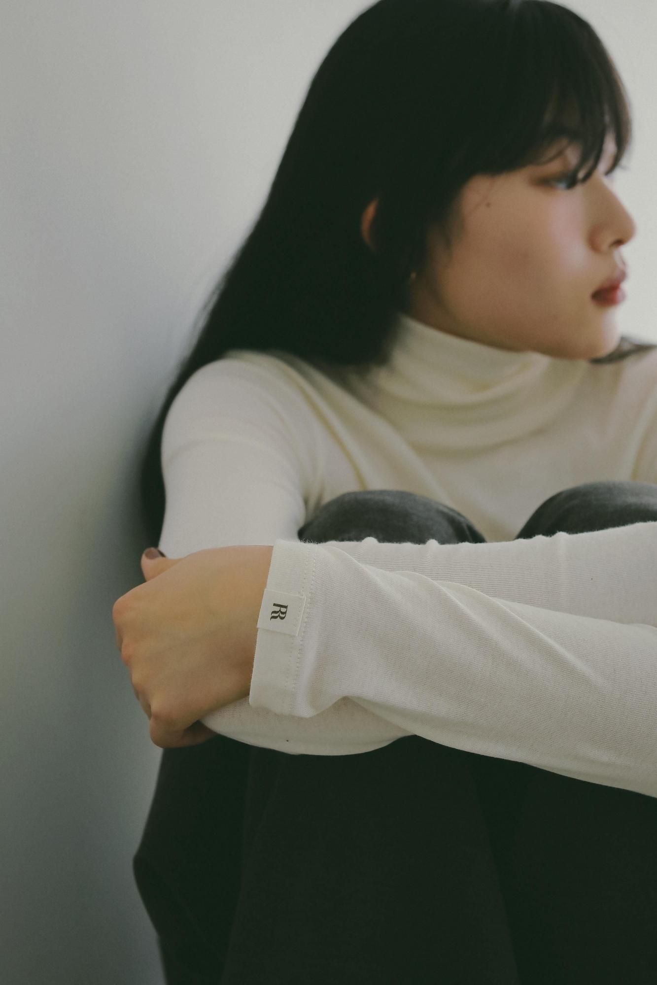 柔らかく伸びのあるフライス素材で仕立てたタートルネックトップス。